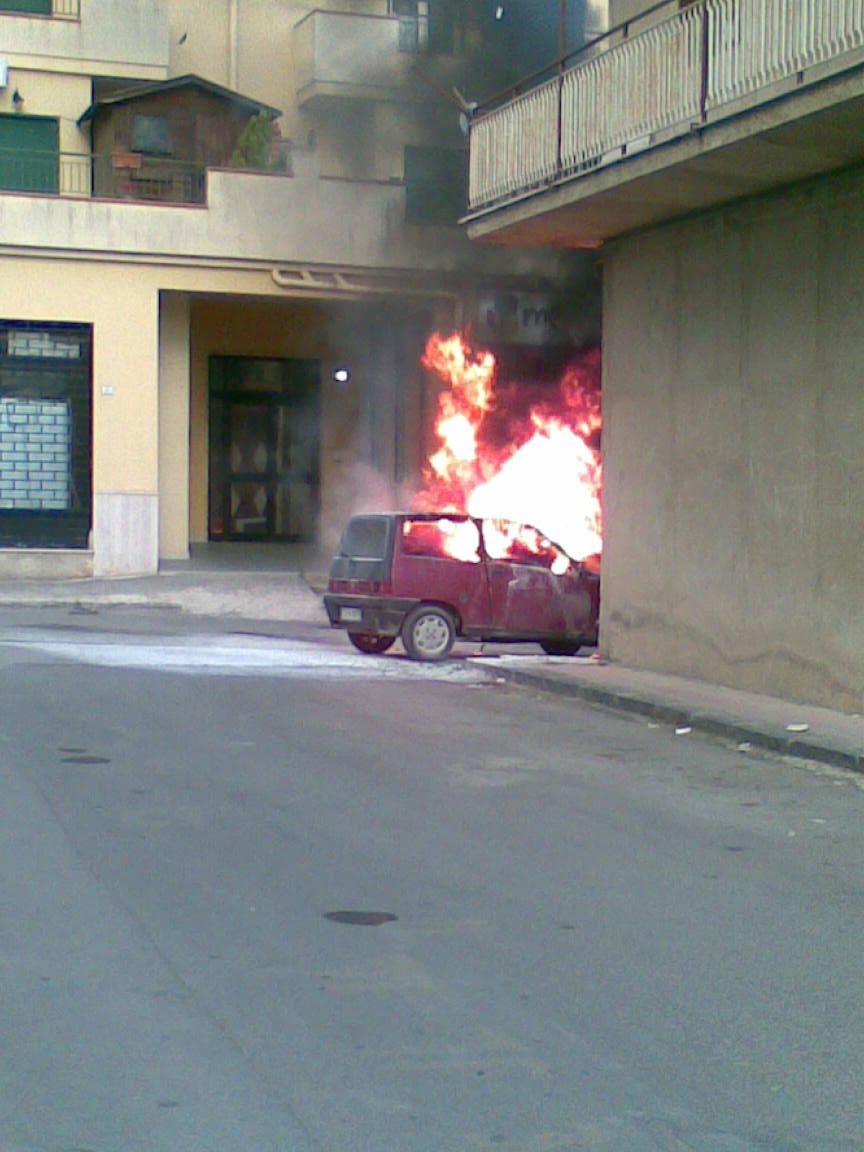 Canicattì, panico in via Piacenza per l’incendio di un’auto