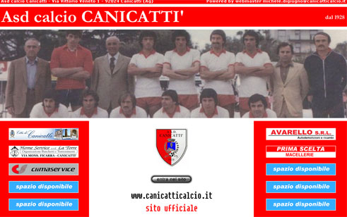 E’ on line il primo sito internet ufficiale del Canicattì. La società, la rosa, notizie e classifiche, servizi per i tifosi e i club, punti vendita biglietti e altro. Di tutto e di più nel sito biancorosso, quello della squadra del cuore dei canicattinesi, che da 81 anni ne seguono le sorti con passione, attaccamento e generosità. Queste pagine telematiche sono dedicate ai tifosi vicini e lontani, soprattutto a quelli che per un motivo o per l’altro non vivono più a Canicattì, ma non hanno mai smesso di sostenere e seguire, con sforzi encomiabili, la massima espressione calcistica della propria città, che tante soddisfazioni ha regalato a diverse generazioni di sportivi. Tempi d’oro. L’attuale dirigenza ha avviato un progetto chiaro e ambizioso: riportare il Canicattì nel calcio che conta, in tempi brevi, contando sul pubblico, sui veri tifosi. Non sarà facile, certamente, ma non saranno lesinati sforzi e sacrifici per ottenere l’obiettivo. Il Canicattì e Canicattì meritano altri palcoscenici calcistici e non solo, anche un nuovo stadio, con l’erba, come avviene ormai ovunque in Sicilia. Naturalmente il sito è alle battute iniziali. Sarà arricchito di giorno in giorno, anche con il vostro contributo, inviando documenti storici, idee e suggerimenti. Qui potrete trovare la voce ufficiale del Canicattì, 24 ore su 24, anche all’indirizzo www.canicatticalcio.com.