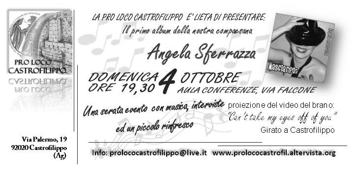 Durante la serata verrà proiettato in anteprima il video del brano Can’t Take my eyes off of you, realizzato dallo staff della Pro Loco Castrofilippo, che vede Angela protagonista di divertenti sequenze sullo sfondo dei più caratteristici scorci di Castrofilippo.