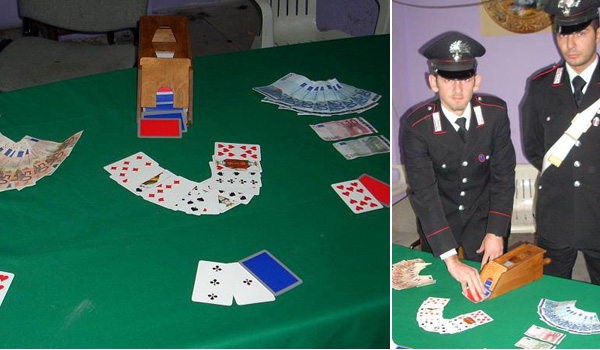 A Favara (ag), i Carabinieri della locale tenenza, durante un predisposto servizio finalizzato alla repressione del fenomeno del giuoco d’azzardo, hanno effettuato un controllo in un locale posto in quella via Francesco Crispi, dove un gruppo di persone si era riunito per giocare d’azzardo. Nella circostanza, sono stati segnalati alla procura della repubblica di Agrigento per esercizio di giuochi d’azzardo e partecipazione a giuochi d’azzardo, n. 11 persone tra cui c.a. classe 1971, di Favara, celibe, impiegato, affittuario del locale interessato che e’ stato posto successivamente sotto sequestro. Tutte le persone indagate, sono state trovate intorno ai tavoli di gioco in possesso di denaro contante ammontante complessivamente ad euro 2.450,00 posto anch’esso sotto sequestro. Si comunicano qui di seguto le iniziali delle altre persone segnalate alla autorita’ giudiziaria: