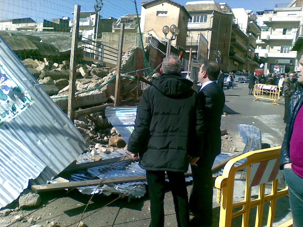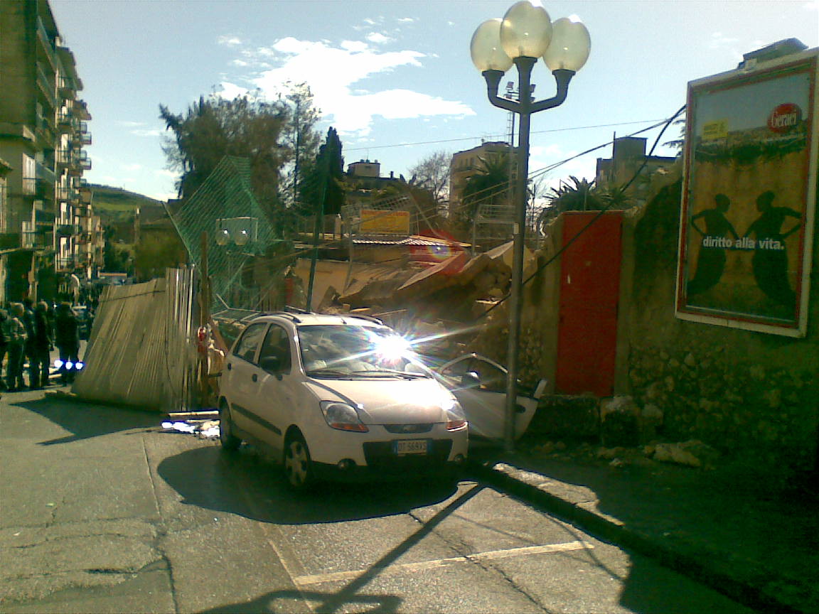 (GUARDA LE FOTO) Che il campo sportivo di Canicattì iniziasse ad accusare i segni del tempo non era una novità ma che crollasse da un momento all’altro non se lo aspettava nessuno. Stamattina, probabilmente a causa delle infiltrazioni di acqua dovute alle abbondanti piogge di questi gironi, è crollato il muro adiacente alla tribuna sud di via Veneto. Nel crollo sono state danneggiate in maniera serie alcune autovetture, per fortuna non ci sono stati feriti. Una donna è stata trasportata in ospedale per la paura dovuta al crollo ma per fortuna non è rimasta ferita. Sul posto si è subito recato il rpimo cittadino Vincenzo Corbo, l’assessore allo Sport Diego Ficarra ed il capo dell’Utc per un primo sopralluogo. Molti i curiosi che si sono piombati in via Veneto per vedere cosa era successo. Le forze dell’ordine hanno inibito il traffico nella zona e transennato tutto il quartiere per scongiurare il pericolo dovuto ad ulteriori cedimenti. Grazie alle barriere metalliche poste in sicurezza dello stadio si è riusciti ad evitare una tragedia.