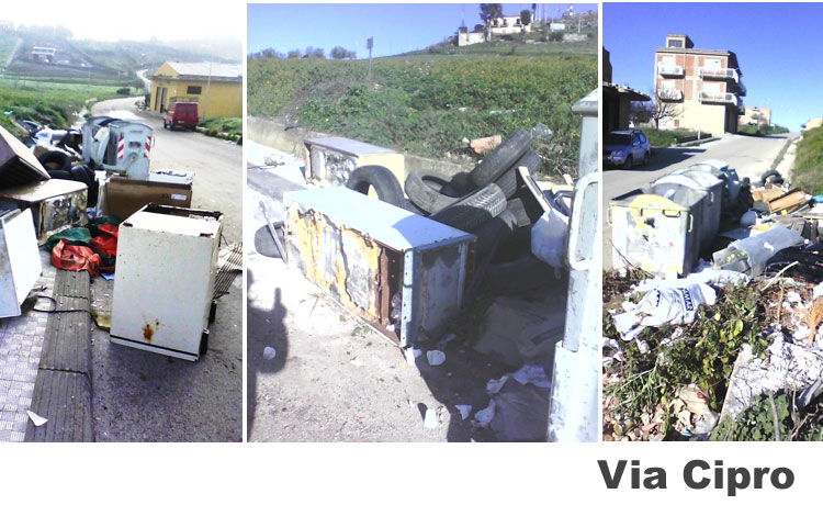 Dovrebbero servire per i rifiuti degli inquilini della zona, ma non e’ così. Quest’ultimi costituiscono, invece, per “certa gente”, utile occasione di discarica abusiva per ogni tipo di immondezze. Gli abitanti di zona rinazzi li usano per scaricare ogni sorta di materiale erbaceo, i ristoratori vengono a portare rifiuti speciali, i gommisti scaricano i pneumatici, I muratori li usano per depositare inerti e eternit, i tappezzieri lasciano sacchi di spugne, i carrozzieri depositano parti di autovetture incidentate, gli idraulici vengono a buttarci palle di autoclave, i coltivatori vengono a buttarci le plastiche di copertura. E’ chiaro quindi che questi cassonetti non servono per gli inquilini della zona dal momento che sono sempre pieni dentro e fuori, stimolando attrazione per i cani randagi. Per risolvere radicalmente il problema è necessario, quindi, che si tolgano. Per evitare che il luogo sia una perenne discarica, una discarica in una strada nuova e frequentatissima, ove nessuno opera l’opportuna sorveglianza non resta che rimuovere i quattro cassonetti. La storia ci insegna che in contrada rinazzi, lungo la strada principale che porta sul versante giacchetto esisteva una vergogna analoga, anche se visa soltanto agli abitanti della zona, ebbene ricordo all’assessore Guarneri che è stata debellata dopo anni di polemiche ma soltando togliendo i cassonetti da quell’inferno