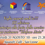 Promossa dall’Associazione “Focus Group” Onlus, dall’Associazione Luce Onlus e dall’Associazione Armonia Sociale Onlus in collaborazione con i gestori del locale Acqua Seltz di San Leone si terrà martedì 31 agosto la manifestazione “Voglio esserci anch’io” per sostenere il Centro Antiviolenza Telefono Aiuto.