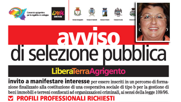 Il Consorzio agrigentino per la legalità e lo sviluppo in partenariato con Libera, nell’ambito del progetto pilota ‘Libera terra Agrigento’ finanziato con fondi del PON Sicurezza, ha pubblicato un avviso pubblico per la costituzione di una cooperativa alla quale sarà affidata la gestione di beni confiscati nel Comune di Naro.