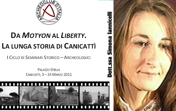 L’archeoclub d’Italia sezione di Canicattì, associazione onlus che da anni opera per la divulgazione, la salvaguardia e la valorizzazione del patrimonio storico-artistico del territorio, organizza il I°Ciclo di Seminari storico – archeologici dal titolo “Da Motyon al Liberty: la lunga storia di Canicattì” che si svolgeranno ogni giovedì dal 3 al 24 marzo 2011, nella Sala Convegni di Palazzo Stella. “Questo evento, che vede coinvolti archeologi, ingegneri ed architetti, intende favorire la conoscenza di beni culturali e storico artistici poco conosciuti ma fondamentali nella storia di Canicattì: dal primo insediamento greco-romano, passando per il castel Bonanno ed il palazzo La Lomia, fino a giungere alla grandiosità del Liberty canicattinese, queste le tappe di un viaggio affascinante che riporterà alla mente di quanti vorranno partecipare i fasti di un glorioso passato-fa sapere la Presidente dell’Associazione Simona Iannicelli”. Agli iscritti verrà rilasciato attestato di partecipazione valido ai fini curriculari spendibile dagli studenti , dai docenti e dagli aspiranti esperti esterni quale titolo culturale ad esempio nei bandi di selezione PON e POR. A tutti gli iscritti verranno consegnati il materiale utile alla frequenza, testi informativi sul paese di Canicattì e d inoltre gli atti dei seminari., redatti dai relatori. Per iscrizioni, info e costi contatti in locandina. Si avvisa che è possibile iscriversi anche durante il primo incontro.