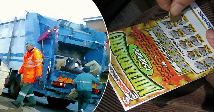 In questo momento i due amici sono alla ricerca disperata con la speranza di ritrovare il biglietto vincente tra cumuli di spazzatura.