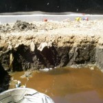 Avendo timore che quest’ultimo potesse essere interessato da infiltrazioni di liquido, si è proceduto, con mezzi adeguati, allo scavo perimetrale del tombino al fine di evidenziare le tubazioni in esso convergenti. Al fine di ottenere una visione chiara di ciò che effettivamente fosse presente all’interno del tombino è stato opportuno procedere alla rottura di una porzione della soletta in calcestruzzo dello stesso Tali operazioni hanno consentito di constatare che all’interno del tombino confluivano diversi tubi di cui uno in direzione del compluvio. Procedendo alla chiusura di una saracinesca che risultava aperta si è constatata l’immediata cessazione del flusso di liquido all’interno del tombino anzidetto, per cui si è ipotizzato che il riversa.mento del liquido che avrebbe interessato l’invaso artificiale fosse riconducibile all’attività posta in essere da ignoti che, introdottisi furtivamente all’interno della discarica, danneggiandone la recinzione, hanno azionato la suddetta saracinesca (mai stata utilizzata dalla Dedalo Ambiente