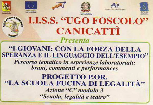 Giovedì 17 novembre alle ore 19,00 presso il teatro sociale di Canicattì verrà messa in scena la performance teatrale dal titolo: “i giovani :con la forza della speranza e il linguaggio dell’esempio”a cura del laboratorio teatrale del liceo classico di Canicattì diretto dalla prof.ssa Carla Carafa.