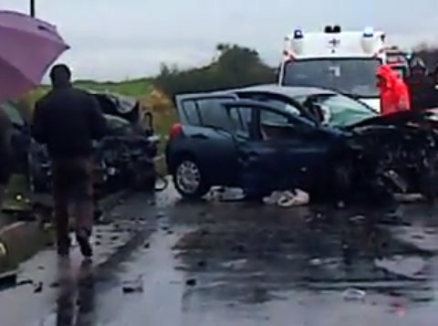 A causare lo scontro l’asfalto reso scivoloso dalla pioggia.