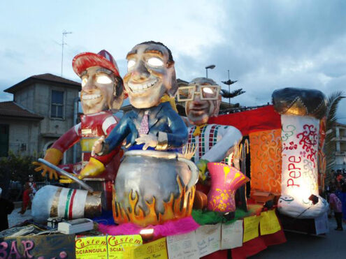 A Ravanusa, in un clima atmosferico di forte e incessante pioggia, si è conclusa la XXVI edizione del “Carnevale Ravanusano”, edizione vinta dal carro allegorico “La prova del cuoco”. Il carro allegorico ha preso spunto dal programma televisivo di successo di Antonella Clerici, sono raffigurati vari personaggi, tra cui Mario Monti in veste di cuoco cucina in un grosso pentolone Silvio Berlusconi, al fianco dell’ex Premier l’amico di sempre Emilio Fede, che nei panni di pompiere tenta di spegnere il fuoco che arde sotto il pentolone. E Antonella Clerici padrona di casa complice, se la ride di ciò che accade. Sul podio al secondo posto il carro allegorico “Super Mario Monti”. Il carro allegorico evidenziava ciò che sta accadendo da mesi nella nostra bella Italia, nella parte posteriore del carro viene rappresentato a forma di enorme dragone Silvio Berlusconi, davanti gira su se stesso l’attuale Premier Mario Monti, che impegnato nel gioco di salvare la Principessa (che è l’Italia) dalle mani del dragone. Al terzo posto si classifica il carro allegorico di Angelo Marco. Tra i migliori gruppi in maschera “Le spagnole”. La manifestazione carnevalesca, organizzata dal Comune di Ravanusa, assessorato allo Spettacolo e Turismo, nonostante le pessime condizioni climatiche che hanno creato enormi disagi, si è caratterizzata in quattro serate di discoteca all’aperto in piazza I Maggio, registrando la presenza di numerose persone.