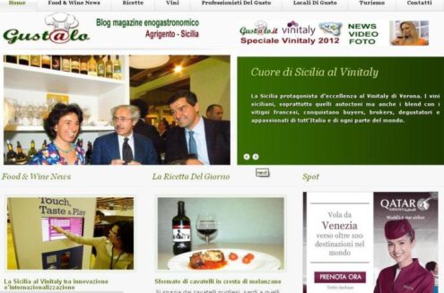 E’ approdato sul web facendo il suo esordio al Vinitaly di Verona www.gustalo.it, nuovo blog magazine enogastronomico che si occupa di food & wine news events in Sicilia e nell’Agrigentino. Ricette, preparazione di piatti, tour in ristoranti e cantine, eventi enogastronomici, incontri con chef, pasticceri, cake designer, gelatieri, sommelier, enologi, gourmet e buongustai per conoscere tutti i segreti del successo dell’enogastronomia siciliana nel mondo, un settore che fa da traino per il turismo. Un nuovo sito molto “saporito” realizzato con la consapevolezza dell’importanza del contributo che può dare il bloggerismo/giornalismo enogastronomico in un territorio che punta tutto sul turismo per rilanciare la propria economia. Gustalo.it, oltre che per gli appassionati di enogastronomia, potrà rivelarsi utile anche per tutti coloro i quali vorranno mettere le mani in pasta in cucina e gradiranno suggerimenti e idee frutto di studio ed esperienza nel mondo enogastronomico fra tradizione e innovazione. Gustalo.it è la naturale evoluzione dell’omonima rubrica enogastronomica curata dalla giovane lady chef agrigentina Claudia Caci su comunicalo.it, il sito web diretto dal blogger/giornalista Calogero Giuffrida. Ad impreziosire gustalo.it ci saranno Martina Sciarrotta, giovane enologa di Agrigento, Floriana Caci giovane dietista di Realmonte, Marco Sgarioto, presidente della sezione siciliana dell’Aic (Associazione Italiana Celiachia) e i contributi che daranno il presidente dell’Unione Regionale Cuochi di Sicilia, il maestro di cucina Salvatore Gambuzza, il presidente delle Lady Chef Sicilia, Giusy Bruccoleri, il presidente Ais di Agrigento, Giovanni Alessi, e altri professionisti del gusto che guardano con curiosità e interesse all’iniziativa.