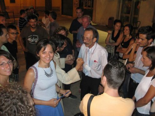 Non riferirò dello slogan sul pizzo che ogni giorno precede tutte le edizioni del TG e che è affidato alla voce di un bambino; i bambini per Pino Maniaci rappresentano non il futuro, ma il presente, come ha ben sottolineato Valentina, una giovane mamma di quattro figli, prescelta a introdurre la serata proprio per il compito affidatole dalla vita di educare la propria prole a non procrastinare la lotta alla mafia, bensì ad attualizzarla nel piccolo della quotidianità. Basta solo dire che proprio quello slogan divertente, simpatico, volgare nel registro lessicale ha portato circa l’80% degli esercenti dei venticinque comuni su cui Telejato trasmette a non pagare il pizzo, ora!
