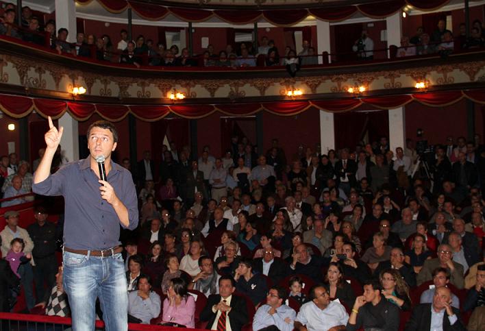 Il tour siciliano di Matteo Renzi nel pomeriggio di ieri ha fatto tappa a Licata. Tra attacchi e battute figlie dell’ironia il candidato alle primarie del centrosinistra, il rottamatore della vecchia politica, l’uomo che vuole cambiare il gruppo dirigente del Pd e dell’intero centrosinistra, scaldato gli animi di cittadini e simpatizzanti accorsi al teatro comunale Re Grillo. Accolto tra gli applausi, sciolto e funzionale, ma soprattutto efficace, ha parlato un’oretta abbondante. “Nessun premio di consolazione nel caso di una sconfitta cosi’ come è avvenuto per altri leader politici in passato, – ha ribadito ancora una volta -, premiati con cariche istituzionali e posti in parlamento; non accettero’ nulla di tutto questo e riprendero’ a fare quello che ho sempre fatto”. Nel suo intervento non ha risparmiato una battuta a Grillo. “I politici continuano a lamentarsi di lui – ha proseguito Renzi riferendosi al comico – ma a volte dice delle cose che sono francamente insopportabili”. Durante l’incontro con i cittadini licatesi ha ascoltato la protesta di un gruppo di disoccupati. Secondo Renzi le priorità per riavvicinare e ridare la fiducia la gente alla politica e contribuire al rilancio dell’Italia: dimezzare il numero dei parlamentari, abolire il finanziamento pubblico dei partiti ed eliminare i vitalizi.