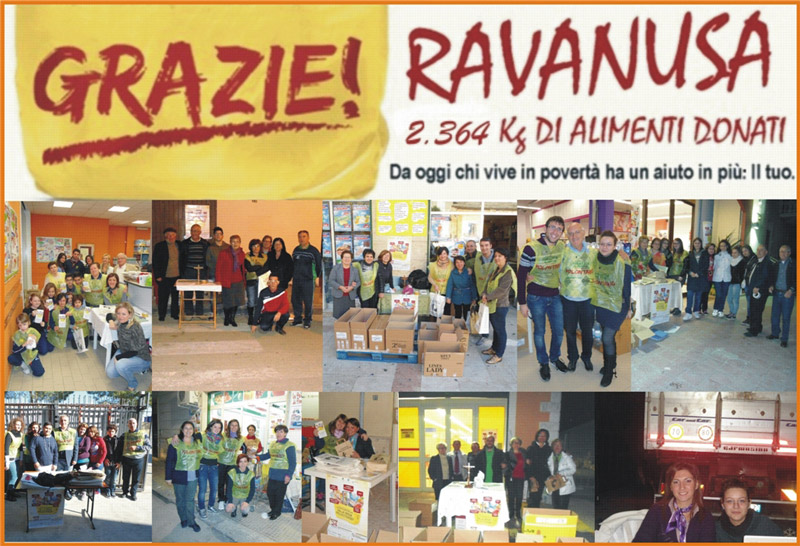 “A Ravanusa, sabato 24 in occasione della 16^Giornata Nazionale della Colletta Alimentare sono stati donati 2.364 Kg di Alimenti. La Caritas Madre Teresa della Parrocchia San Giacomo ringrazia innanzitutto colore che, anche quest’anno, hanno manifestato la loro generosità, condividendo i bisogni di quanti vivono in condizioni di povertà, attraverso un semplice gesto quotidiano come quello di fare la spesa. Un grazie speciale ai volontari delle varie associazioni, gruppi e movimenti delle parrocchie che hanno consentito la realizzazione di questo grande evento di solidarietà. La loro generosità, il loro entusiasmo, la loro dedizione sono il segno più evidente che la condivisione e il dono sono all’origine del reale cambiamento di sé e della società. Grazie anche alle oltre 8.700 strutture caritative che offrono quotidianamente assistenza ai poveri e agli emarginati in tutta Italia, ridistribuendo gli alimenti raccolti dal Banco Alimentare, durante la Giornata Nazionale della Colletta e nel corso dell’anno. Attraverso le strutture caritative un abbraccio di cuore va a quanti in Italia vivono in condizioni di disagio. Sappiamo che la nostra opera è una goccia nel mare del bisogno, molto più ampio della sola povertà materiale che condividiamo, attraverso il gesto del dono, bisogno più profondo dell’uomo. Grazie a tutti i supermercati di Ravanusa e a quelli che in tutta Italia hanno aderito a questa grande giornata di fraternità. DATE E VI SARA’ DATO.”