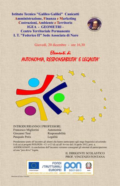 Si è svolto lo scorso giovedì 20 all’I.T.C.G. “ G.Galilei” di Canicattì un incontro- dibattito su “Elementi di Autonomia, Responsabilità e Legalità “.