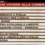 La coalizione “Italia bene comune”, guidata da Bersani, è al 37,9% con il Pd al 33,1% e Sel di Vendola al 4,8%. La coalizione di centrodestra si attesta, invece, al 25,4% con il Pdl al 17,8%, la Destra di Storace al 1,1%, la Lega di Maroni al 5,3% e Fratelli d’Italia della Meloni e Crosetto all’1,2%.