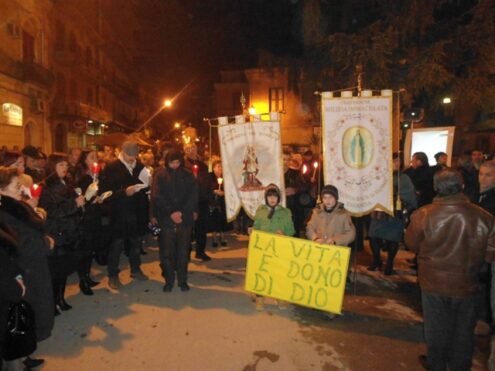 “Per difendere la Vita” e per gioire del dono della “Vita”: “Generare la vita vince la crisi”, questo è stato il tema della 35.ma Giornata nazionale della Vita indetta domenica 3 febbraio 2013 dalla Cei (Conferenza Episcopale Italiana). La Comunità Ecclesiale di Ravanusa e il C.A.V. (centro aiuto alla vita) hanno vissuto una tre giorni per ringraziare e riflettere sull’importanza del dono della Vita. Venerdì 1 un momento di preghiera ha riunito le persone al cimitero davanti al monumento dei bambini mai nati, a cui è seguita una processione fino alla Chiesa San Michele per un momento di adorazione e di preghiera davanti a Gesù Eucaristia. Sabato 2 si è intensificata la promozione della campagna europea “Uno di noi” lanciata dal Movimento per la Vita, un progetto che mira a raccogliere, entro novembre, un milione di firme, affinchè il legislatore dell’Unione Europea provveda ad introdurre un divieto alle attività presupponenti la distruzione di embrioni umani,tutelando la vita sin dal concepimento. Domenica 3 “Giornata nazionale della Vita”, in tutte le Parrocchie si sono vendute delle “primule”, rappresentanti lo sbocciare di una nuova vita, il cui ricavato sosterrà i bisogni del C.A.V.; alle ore 19:30 dello stesso giorno la Comunità Ecclesiale di Ravanusa con tutti i vari movimenti, gruppi, associazioni ecc. si è riunita davanti al “Milite Ignoto” (P.zza Crispi) per dare inizio alla 3^ “Marcia per la Vita”. Un corteo numeroso ha vissuto dei momenti di riflessione e di preghiera; la marcia ha percorso l’intero Corso della Repubblica, soffermandosi in Piazza Garibaldi per poi concludersi in Piazza I Maggio davanti la Chiesa Madre. Oggi accogliere una nuova vita sembra implicare esclusivamente dei costi, non si guarda più al dono che è quel bambino, quella creatura che sta diventando il futuro reale. Lo fa nella sua carne, nel suo vagito, nel suo sorriso, sta mostrando che è possibile una vita realmente più umana per l’intera società. E allora, ogni bambino che nasce è per noi motivo di speranza. “Generare la vita vince la crisi” è un invito ad una vera sfida, quella di partire dalla crisi per poter essere generativi di vita, di rintracciare in questa situazione di crisi una nuova solidarietà tra le famiglie, per uno sguardo più umano, arricchito dallo sguardo della Croce di Cristo che diventa motivo di speranza.