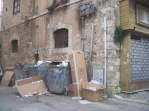 In viale regina Margherita, nel cosiddetto salotto buono della città, quasi ogni sera vengono abbandonati rifiuti e cartoni che contribuiscono ad aumentare il degrado.