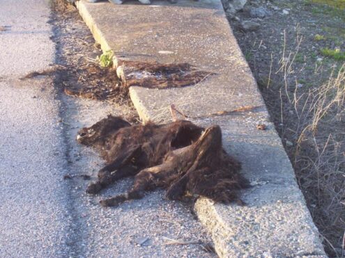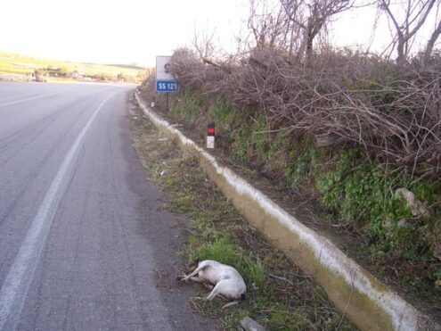 Gli animali, come si può vedere dalle foto scattate dal volontario Vincenzo Misuraca, sono lasciati al bordo della carreggiata senza che nessuno si preoccupi della loro rimozione.