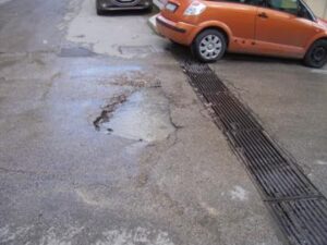 In via Majorana inoltre, nonostante le numerose segnalazioni, continuano le perdite idriche e sono presenti buche la cui profondità mette in serio pericolo pedoni e motociclisti.