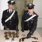 In particolare i militari dell’Arma, al termine di prolungati servizi di osservazione e pedinamento, hanno eseguito una perquisizione in un casolare di campagna che era nella disponibilità degli arrestati. La perquisizione ha consentito il rinvenimento di quattro pistole semiautomatiche di vario calibro, munizioni di vario calibro, tre chili di sostanza stupefacente del tipo “HASHISH”, suddivisa in 28 panetti ed un bilancino di precisione.
