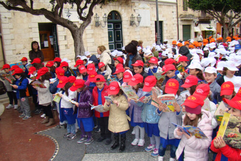 La giornata evento,promossa dall’ins.Giusy Aronica,responsabile della Biblioteca Scolastica, è stata pienamente condivisa dall’Amministrazione Comunale che vi ha partecipato con la rappresentanza del Sindaco dott. G. Picone, dell’Assessore alla P.I. dott. Santina Accascio e della Polizia Municipale. Il raduno è avvenuto nella piazza XX Settembre vicina alla scuola. Alle ore 9,15 tutti gli alunni della Scuola Primaria “S. Giovanni Bosco” e del plesso “Pascoli” e i rispettivi docenti, al segnale convenuto, il fischio del Vigile, tutti insieme hanno scandito ad alta voce la frase: “I libri sono come la mente: funzionano solo se li apri ”, iniziando altresì a leggere per tre minuti uno stralcio del libro preferito portato con sé, in un’armonia di parole.