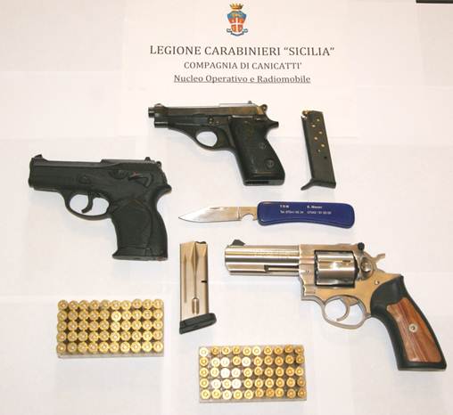 A Canicattì i Carabinieri, nel corso di un servizio finalizzato alla repressione dei reati in materia di armi, hanno proceduto all’arresto in flagranza di detenzione e porto abusivo di armi e munizioni, L.R., 46enne, che a seguito di una perquisizione sulla propria autovettura, una Fiat Ulisse, è stato trovato in possesso di una pistola semiautomatica Beretta con relativo serbatoio contenente 6 cartucce ed un coltello di venere vietato. I primi accertamenti espletati dai militari dell’Arma hanno consentito di risalire alla provenienza della pistola, oggetto di un furto in danno di un pensionato, consumato alla fine del mese di ottobre del 2001. Nel prosieguo della predetta attività di Polizia Giudiziaria, i Carabinieri hanno esteso la perquisizione all’abitazione dell’incensurato, a seguito della quale sono state rinvenute altre due pistole e 50 cartucce legalmente detenute, ma ugualmente sottoposte a sequestro amministrativo per le successive eventuali determinazioni del competente organismo di Pubblica Sicurezza. L’uomo è stato quindi trasferito alla Casa Circondariale di Agrigento.