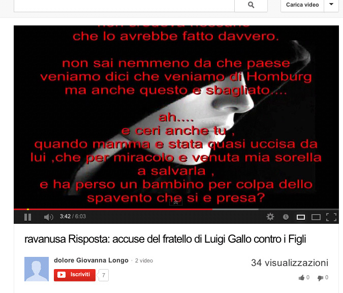 Un altro duro video pubblicato su youtube dai figli della signora Giovanna Longo assassinata a Ravanusa dall’ex marito Luigi Gallo.