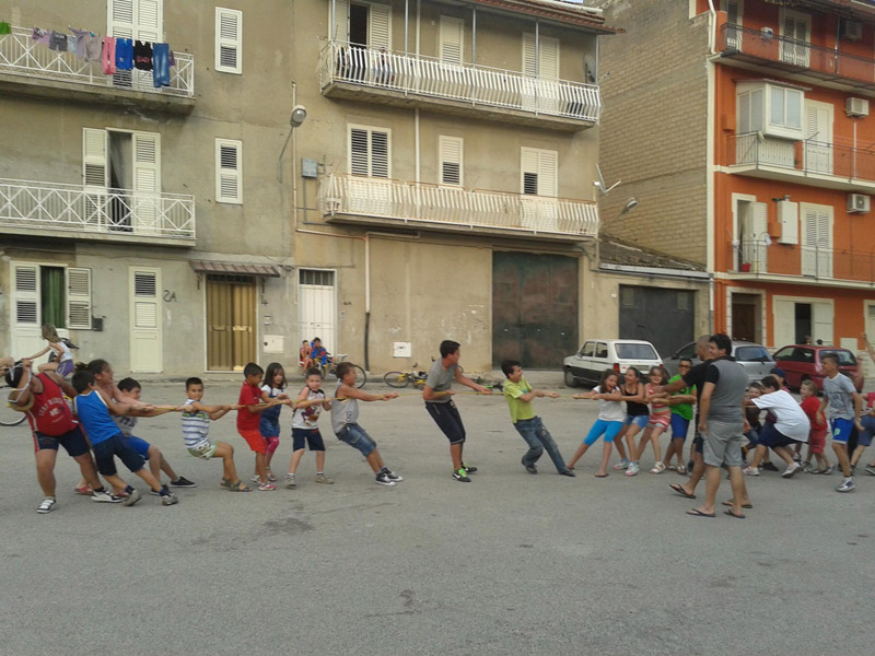 Quest’anno a Ravanusa in occasione del Grest estivo l’Oratorio San Giacomo di Ravanusa ha deciso di scendere in strada, seguendo le parole di Papa Francesco: “uscite, andate nelle periferie”. Come accade da diversi anni, per il periodo estivo le diverse parrocchie organizzano il Grest (Gruppo Estivo) per impegnare i ragazzi in delle attività e dei giochi che trasmettano i valori dell’amicizia e della condivisione, non perdendo di vista il cammino di fede che ovviamente non va in vacanza. L’Oratorio San Giacomo, partendo dalla considerazione che il Grest non deve essere una proposta “escludente” chi non è cristiano o chi è lontano, ma “includente” in un’avventura che parte da un dono ricevuto, quello dell’amore e della vita, ha voluto proporre qualcosa di diverso: non sono più i bambini ad andare in Oratorio, ma gli animatori scendono in strada girando i vari quartieri del paese, organizzando giochi e attività che raccogolgono tutti i ragazzi che vi abitano. Ad essere raggiunti sono soprattutto i bambini che vivono in periferia e che non hanno la possibilità di partecipare ai Grest organizzati nelle parrocchie. Questa iniziativa è stata accolta con grande entusiasmo dai piccoli, che attendono con gioia l’arrivo degli animatori e dei loro giochi, ma anche dalle loro famiglie che spesso si lasciano coinvolgere nelle varie gare e nei balli che vengono proposti.