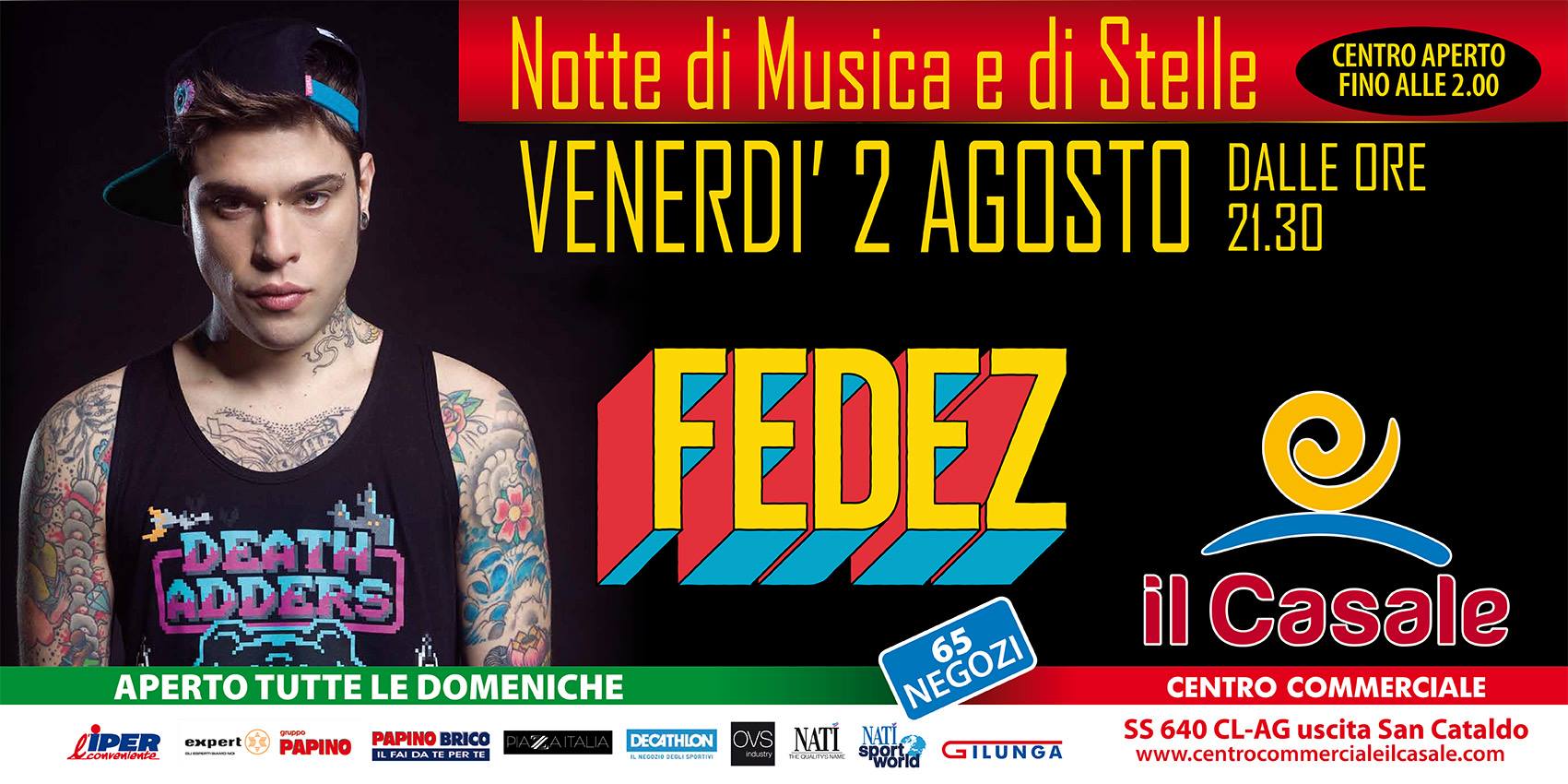 Tutto pronto per il mega concerto di Fedez. Questa sera il rapper incontrerà i suoi fans a partire dalle 21.30. L’ingresso è Gratuito. Alle 24.00, grande spettacolo pirotecnico.