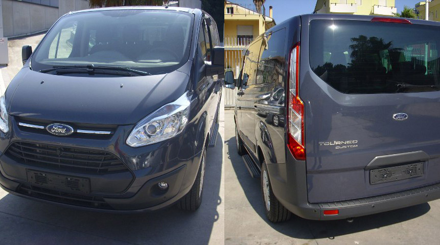 La Ford presenta sul mercato italiano il suo multispazio XXL: il Tourneo Custom. Questo mezzo è disponibile con il Passo Corto o il Passo Lungo, ha 8 posti, è equipaggiato da un Motore Turbodiesel 2200 da 100, 125, o 155 cv, negli allestimenti Trend o Titanium. Esternamente il Tourneo è un veicolo dalle forme e dalle linee moderne, elegante e sportiveggiante. Molto comoda la doppia porta scorrevole che permette un agevolissima salita ai posti posteriori. Frontalmente il cofano spiovente, unito alla grande mascherina trapezoidale e ai gruppi ottici allungati, creano quel tocco di grinta sportiva che ben si confà a questo mezzo di casa Ford. Posteriormente invece il padrone assoluto è l’enorme portellone dritto con il grande lunotto vetrato, ben incorniciati dagli eleganti gruppi ottici rettangoli verticali. Salendo a bordo dell’8 posti tedesco abbiamo un abitacolo che dire spazioso è dire poco: immenso, ottimamente modulabile, gli 8 posti sono disposti in maniera ottimale, il bagagliaio è sfruttabilissimo in qualunque situazione. Analizzando come di consuetudine la consolle centrale, notiamo la sua completezza, la sua ergonomicità e la facilità di uso (i comandi clima e radio sono ben disposti). Molto comodo è inoltre il cambio in consolle ed il posto di guida rialzato. Elegante e completo di tutto è il quadro strumenti che nella grafica e nei colori riprende quello delle ultime nate di casa Ford (Fiesta e B-Max su tutte). Ed ora il momento del test drive: il Ford Tourneo Custom provato è stato il 2200 TDCI 125 cv Passo Corto Trend da 37413 €. La Ford propone sul mercato italiano una multispazio 8 posti per chi ha bisogno di spazio e al contempo ha necessità di portare parecchie persone con se. Questo veicolo made in Germany è un mezzo maneggevole (su strada si guida con facilità nonostante le dimensioni non proprio small) comodo e confortevole. Il motore che pulsa sotto il cofano del Tourneo è il 2200 TDCI da 125 cv, unico motore disponibile con la potenza mediana. Questo propulsore è elastico e brillante, silenzioso, e sicuramente questo livello di potenza è quello giusto in rapporto al peso e alla mole del Tourneo. Infine il listino prezzi: si va da 33071 € del Tourneo Custom 2200 TDCI 100 cv Trend Passo Corto per arrivare a 38516 € del Tourneo Custom 2200 TDCI 155 cv Titanium Passo Lungo (Diesel).