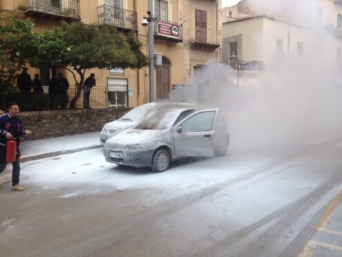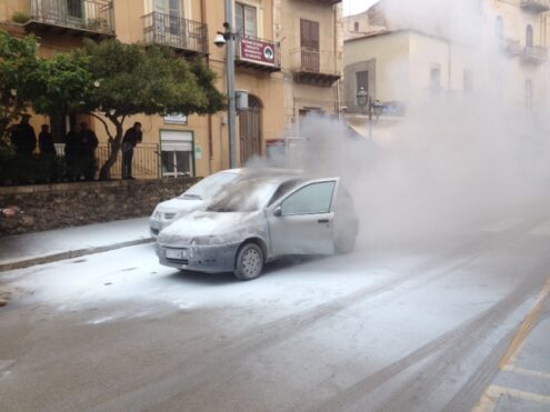 Potrebbe essere stato un improvviso corto circuito la causa dell’incendio che, pochi minuti fa, intorno alle 11.30, ha incendiato una Fiat Punto in transito in corso Umberto.