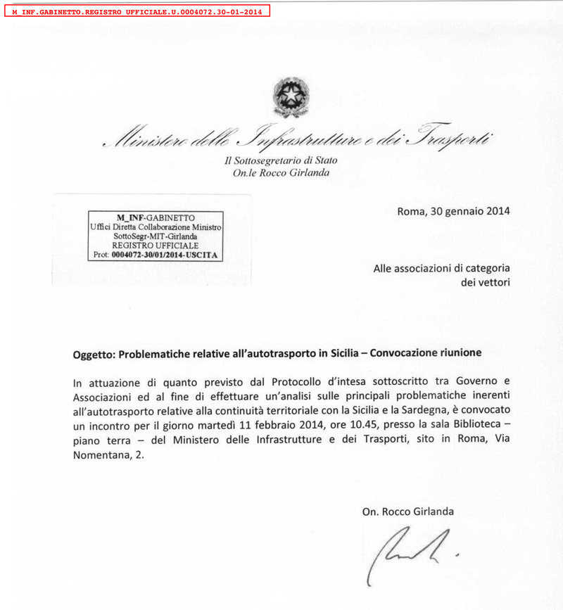 E’ stata riconvocata per l’11 febbraio la riunione tra le associazioni di categoria e il Governo per le problematiche relative all’autotrasporto in Sicilia. E’ doveroso un ringraziamento ad alcuni esponenti politici siciliani che, sensibili ai problemi della loro terra, hanno sollecitato il Ministro Lupi e il Sottosegretario Girlanda ad affrontare in tempi brevi le criticità dell’autotrasporto siciliano. Vogliamo sperare che sia l’inizio di una collaborazione costruttiva con il Governo e che finalmente parta questo tavolo tecnico per risolvere gli annosi problemi della nostra regione.