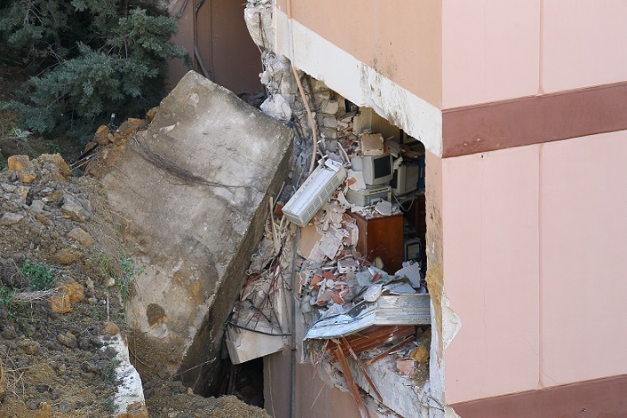 I danni del movimento franoso nel documento video degli uomini della Polizia Scientifica della Questura di Agrigento, incaricati dal procuratore capo Renato Di Natale e dal sostituto procuratore Andrea Maggioni, di eseguire i rilevamenti del caso per portare avanti le indagini e stabilire eventuali responsabilità penali. Indossati pettorina ed elmetto, facendosi largo con la luce delle torce, gli agenti varcano il portone d’ingresso della ‘prima’ palazzina, quella sventrata dalla furia devastatrice della porzione di costone staccatasi. Ovunque distruzione e devastazione.