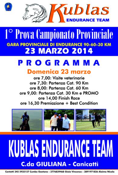 Alla gara, organizzata dal Kublas endurance team di C.Da Giuliana Canicattì, participeranno il più piccolo cavaliere siciliano, Daniele Vaccaro di Canicattì , di soli 6 anni, ed il più anziano, Calogero Vizzini 65 anni di Ravanusa.