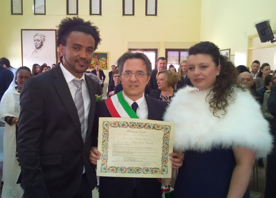 Con queste parole il vice sindaco del comune di Delia, Calogero Lo Porto, che non ha saputo nascondere la sua emozione, ha officiato, sabato 22 marzo, il matrimonio tra Gabirye Samuel Abeba, 30 anni, nato ad Addis Abeba, e Graziella Failla Mulone, 23 anni, nata a Mannheim e residente a Delia.