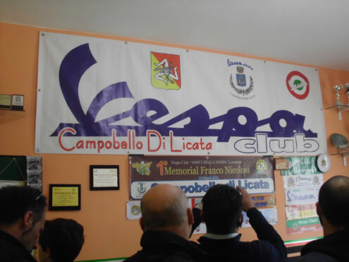 Giorno 23 marzo all’interno degli impianti sportivi di Campobello di Licata si è inaugurata la nuova sede del vespa club. All’inaugurazione erano presenti gli associati del club rigorosamente in vespa, amici e simpatizzanti della mitica 2 ruote, presente inoltre il primo cittadino Gianni Picone il quale assieme a Giustino Gatì hanno ricevuto la nomina di Soci onorari , dichiara Gianni Curto Presidente del vespa club ” diamo questo riconoscimento a questi 2 amici per la sensibilità dimostrata e la preziosa collaborazione a favore delle attività del vespa club di Campobello di Licata”. Glia mici vespisti ringraziano la società sportiva che gestisce gli impianti sportivi “ASD nuova campobello” per aver messo a nostra disposizione questa nuova sede a titolo gratuito. Il presidente del vespa club invita tutti gli amici della 2 ruote per domenica 1 giugno per un mega raduno.”