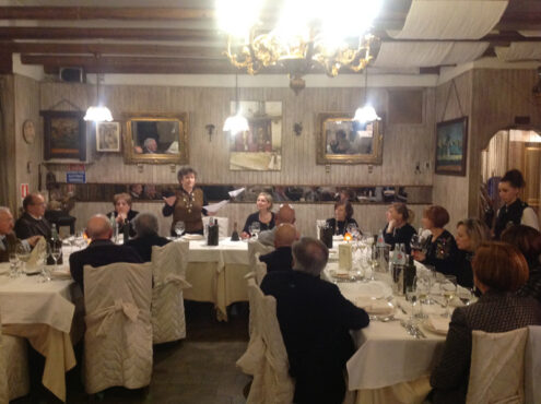 Ecco, questo è un modo, come tanti altri, di fare cultura seduti a tavola. E’ un modo per arricchire le proprie conoscenze attraverso la narrazione che viene, a turno, fatta da volontari relatori che offrono la propria preparazione professionale a beneficio dei commensali. Noti giornalisti, storici, noti cuochi, cultori e studiosi di tradizioni popolari e tanti altri esperti mettono le proprie conoscenze professionali per spiegare la genesi e la composizione dei piatti sui quali spesso e superficialmente ci soffermiamo semplicemente per apprezzarne il grado di cottura o l’accostamento dei sapori.