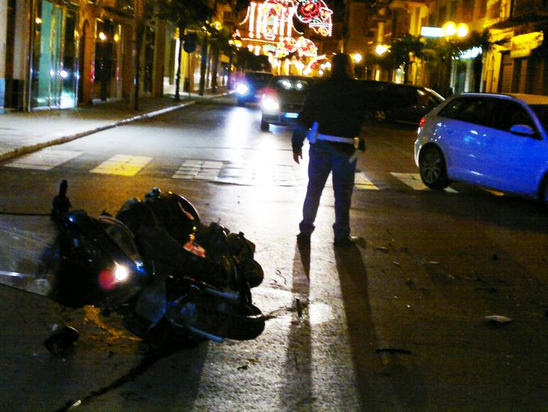 Tanta paura e traffico bloccato, verso mezzanotte, in via regina Margherita a causa di un grave incidente stradale che ha visto coinvolti uno scooter Yamaha 125 ed una Alfa 166.