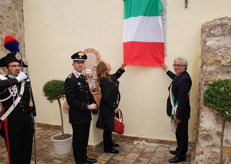 Alle parole del colonnello Riccardo Sciuto è poi seguita la declamazione di una poesia in vernacolo e la scopertura di una lapide marmorea con la seguente motivazione: “Durante un servizio di perlustrazione, avvistati due individui che avendo compiuto poco prima un’impresa delittuosa, tentavano di allontanarsi con la refurtiva, si slanciava arditamente per primo al loro inseguimento e, malgrado fatto segno a colpi d’arma da fuoco, proseguiva coraggiosamente nella sua azione. Gravemente ferito da un colpo di pistola, mentre stava per afferrare uno dei malfattori, trovava ancora la forza di reagire col fuoco della sua arma, fino a quando si abbatteva esanime al suolo. Mirabile esempio di dedizione al dovere, spinta fino al sacrificio della vita”.