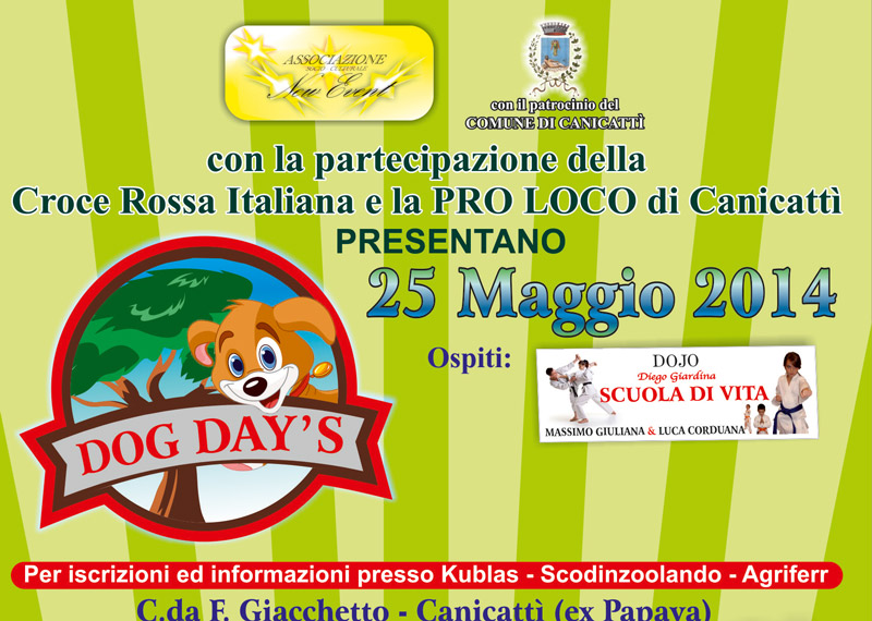 Domenica 25 Maggio l’Associazione New Event con il patrocinio del Comune di Canicattì organizza “Dog Day” la giornata dedicata agli amici a quattro zampe.