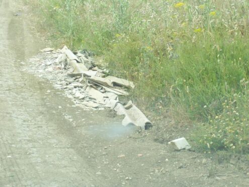 L’amianto, soprattutto quello rotto e sbriciolato, è altamente inquinante per i terreni, per le falde acquifere e cancerogeno per l’essere umano.