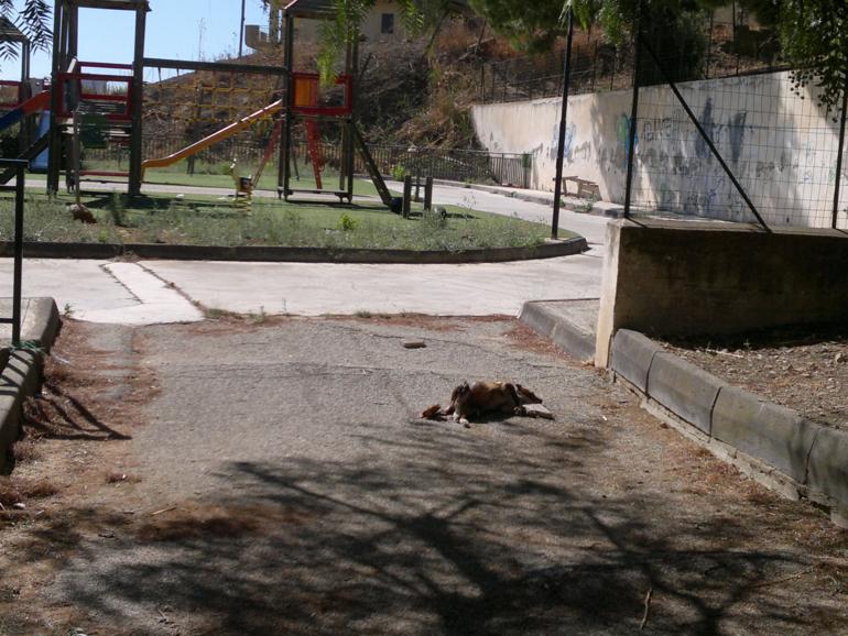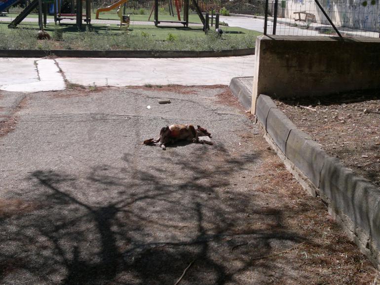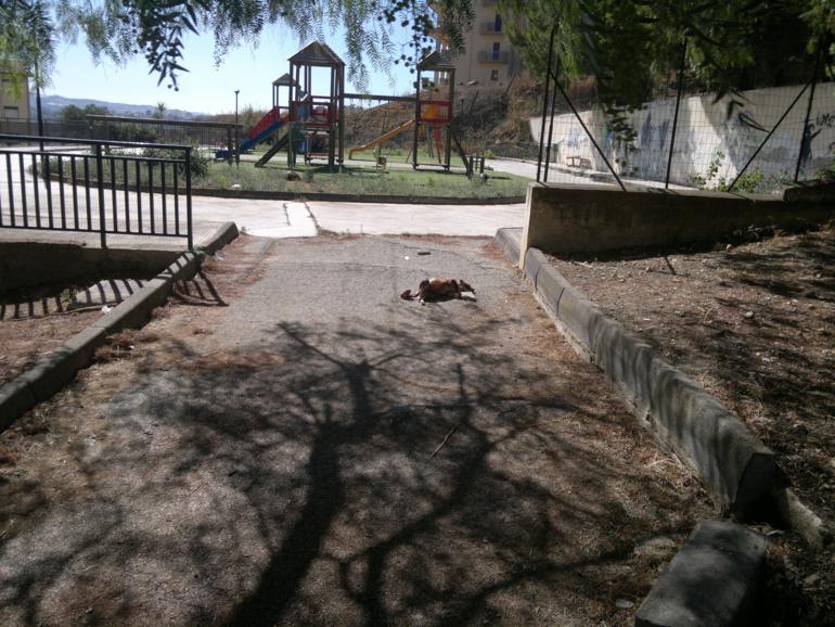 I residenti di via della Costituzione, una traversa di via De Gasperi, hanno segnalato la presenza di un carcassa di cane proprio davanti l’ingresso del parco giochi.