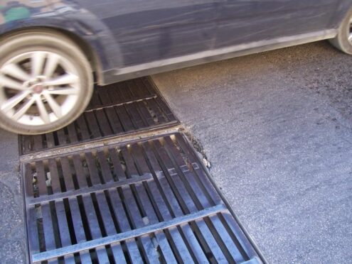 Nella zona la situazione è a rischio poiché alcune caditoie poste sulla carreggiata per il deflusso dell’acqua piovana sono sopraelevate e rappresentano un pericolo per la pubblica incolumità.