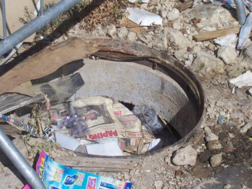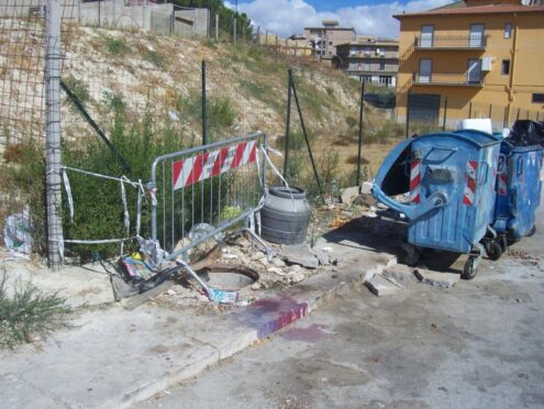 Nella zona, come si vede nelle foto, vi è una discreta quantità di immondizia ed un tombino privo di copertura.