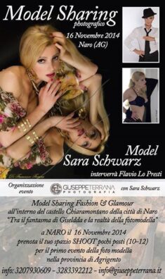 Sara Schwarz una delle fotomodelle più ricercate in italia, giorno 16 novembre sarà nel magnifico castello chiaramontano della città di Naro, la modella è per la prima volta in provincia di Agrigento.