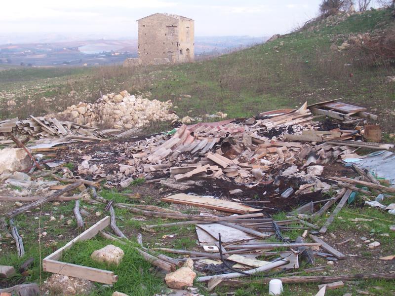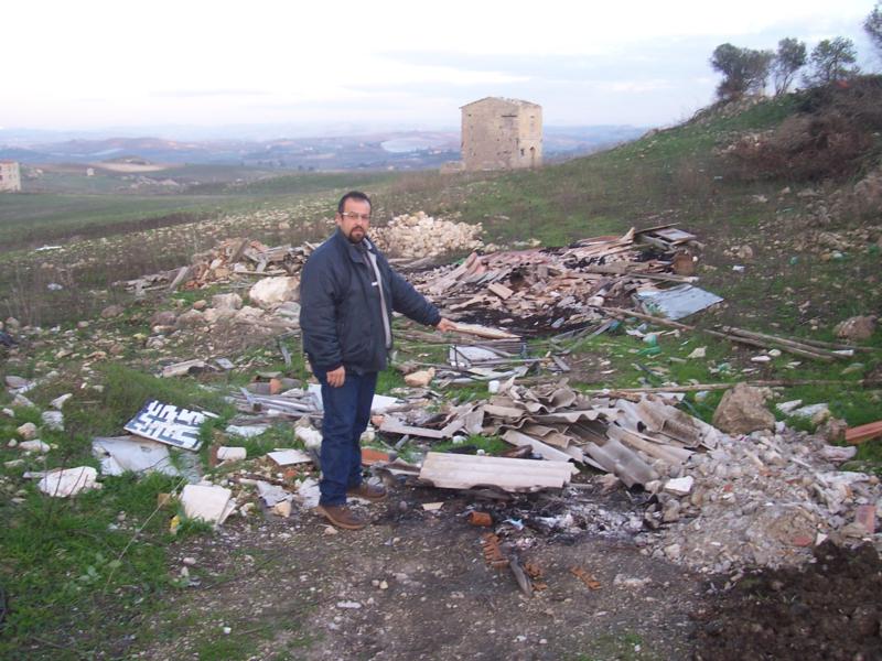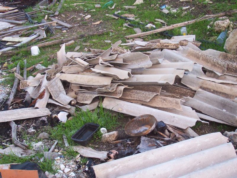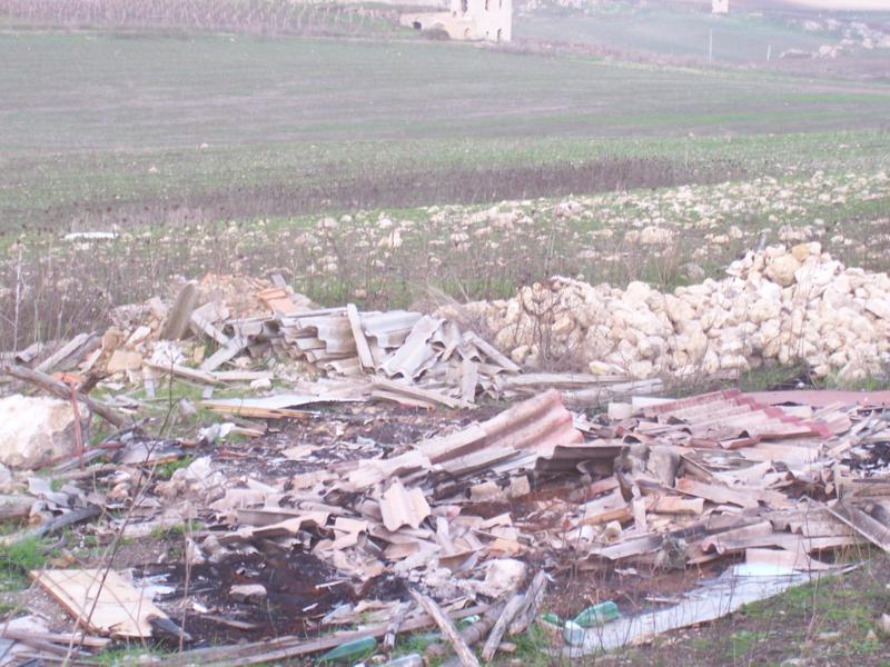 Nella zona, come si vede dalla foto, sono presenti rifiuti di materiale edile e vecchie vasche in eternit frantumate e dunque molto pericolose per la pubblica incolumità.
