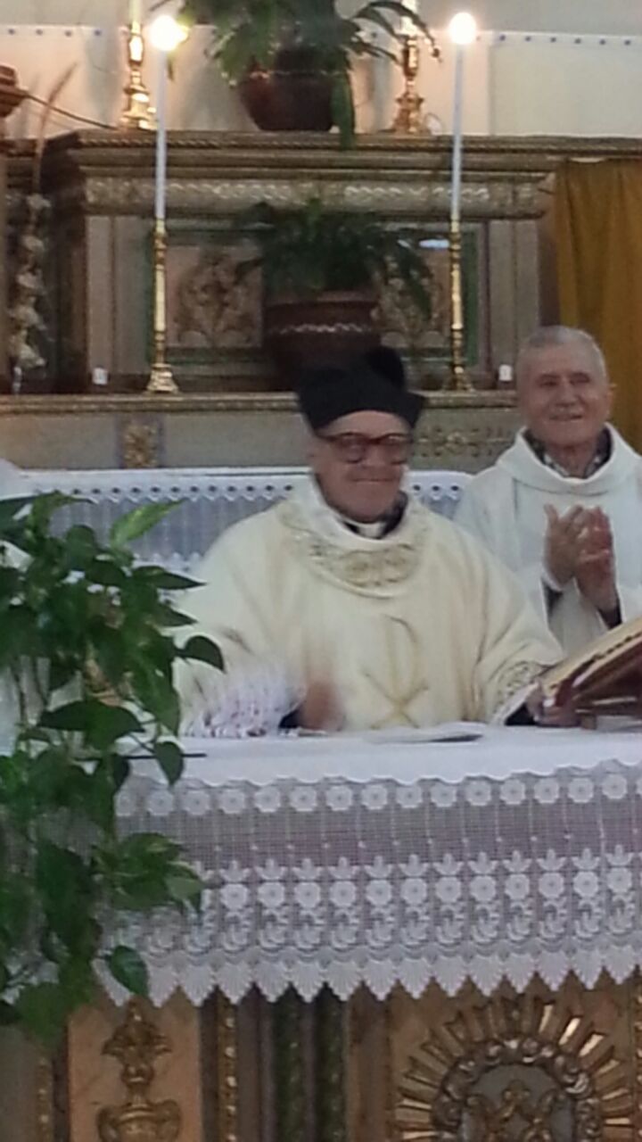 Don Mimì ha ringraziato tutti in un ideale abbraccio, l’unico momento che, in verità, ha tradito l’emozione del festeggiato e dei presenti.