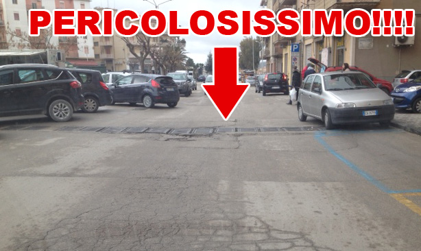Va bene fare finta di non vedere, ma non si può fare a meno di sentire gli effetti di un dislivello diventato oramai una trappola in via Tenente La Carrubba all’altezza del panificio. Ci sono arrivate segnalazioni a decine, e lo abbiamo costatato personalmente che quelle grade di tombini oramai disallineati sono un vero pericolo per l’incolumità pubblica e per le automobili dei cittadini. Facciamo finta di non vedere? E allora ve lo facciamo vedere noi. Chi abita nelle vicinanze ci ha raccontato di ragazzi caduti col motorino a causa di questa situazione. E allora invitiamo il signor Sindaco, sempre attento alle nostre segnalazioni, di mettere in sicurezza l’area interessata, prima che qualcuno si faccia male. Sicuri che il primo cittadino interverrà nelle prossime 48 ore, data la pericolosità e il perpetuarsi della situazione, diciamo a quanti ci hanno segnalato il problema che vi terremo informati.