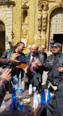 Domenica mattina Naro si è svegliata al classico rumore dell’inconfondibile suono di motori Harley Davidson. Piu’ di 200 moto-bikers si sono dati appuntamento nella città della Funlgentissima in occasione del motoraduno regionale della prestigiosa marca americana. Un scena mai vista per le strade narese; un’emozione costante per tutta la durata della manifestazione. I centauri si sono riuniti in Pzza Roma, ove hanno sostato in attesa della riunione di tutti i partecipanti. I naresi hanno colto l’occasione per ammirare stupende modelle su due ruote che, approfittando della giornata di sole, brillavano in tutta la loro bellezza e grandezza. Qualcuno ne ha approfittato per scattare qualche foto seduto su “bestie” da strada che, fiere, mostravano tutta la loro grandezza. Moltissimi sono state le persone che si sono riunite in P.zza Roma. Successivamente la carovana si è spostata in per Viale Umberto fino ad arrivare in P.zza dove le moto sono state parcheggiate in fila lungo tutto il perimetro della piazza principale narese. Un vero spettacolo, un concerto di motori che suonavano sinfonie uniche inconfondibili. In Piazza Garibaldi i Bikers sono stati ricevuti dal Sindaco Cremona e da alcuni assessori che si sino uniti alla grande festa a due ruote. Sembrava assistere ad un giorno di festa. Piano piano la Piazza si è riempita di curiosi, di appassionati che venivano di ogni luogo dell provincia e non. L’atmosfera è stata magica. Il sole e la giornata serena collaborava nella riuscita del moto-raduno. Le moto brillavano al solo. Ogni tanto qualcuno accendeva quei motori e faceva ascoltare il suono cosi soave da far impallidire qualsiasi opera verdiana o Pucciniana. Tutto sembrava cosi’ sereno, cosi magico, che Naro e i Naresi per un giorno si sono dimenticati del problemi soliti, della crisi e di tante altre cose. Il Sindaco Cremona e gli assessori intervenuti, ne hanno approfittato per immortalarsi con la visione dei quelle moto cosi belle cosi’ fiere. Durante la manifestazione tutti i partecipanti hanno potuto approfittare del rinfresco che era stato adottato in piazza a rifocillare i Bikers e tutti gli intervenuti. E’ stata una giornata indimenticabile, le persone si sono divertite; l’amministrazione comunale ha partecipato in pompa magna, è questo ne dobbiamo dare atto, affermando che ci ha fatto piacere vedere che il Sindaco Cremona e gli assessori hanno partecipato a questa manifestazione cosi’ caratteristica, e che siano stati vicini ai cittadini naresi che a loro volta hanno goduto di questa giornata memorabile. Insomma Tutta la giornata è stata gioiosa e piana di rombanti motori Harley Davidson.